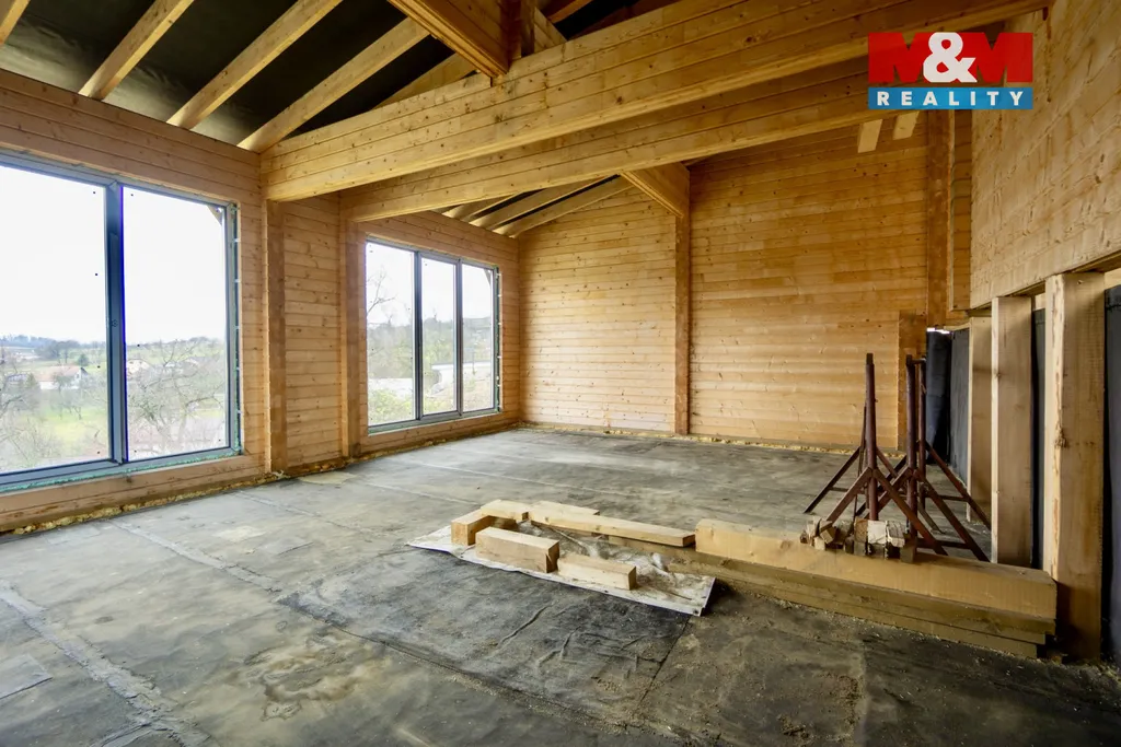 Nabízíme k prodeji rozestavěnou moderní dřevostavbu v klidné části obce Police u Valašského Meziříčí. Tato samostatně stojící stavba je skvělou volbou pro ty, kteří hledají klidné rodinné bydlení s dostatkem prostoru. Před velkými francouzskými okny by měla být vybudována velká terasa s krásným výhledem do okolní krajiny. Dřevostavba stojící na betonovém základu je umístěna na pozemku o celkové výměře 1197 m², zastavěná plocha stavby je 130 m². Pozemek nabízí dostatečné množství pro okrasnou nebo užitkovou zahradu, před domem výstavbu garáže nebo parkovacího stání. Nemovitost je částečně podsklepena, což poskytuje dostatečný prostor například pro zahradní vybavení nebo dílnu. Velkou výhodou je možnost dokončení domu dle vlastních představ a potřeb. Nepropásněte příležitost vytvořit si domov podle svých představ v malebné lokalitě v blízkosti přírody i města. Projekt a stavební dokumentace je zajištěna. Rádi vám tuto atypickou nemovitost ukážeme při prohlídce.