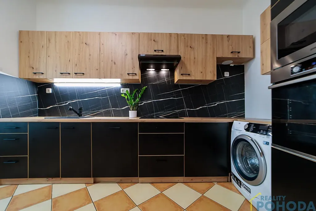 Součástí kuchyňské linky jsou spotřebiče : myčka, mikrovlnná trouba, horkovzdušná trouba, pračka, sklokeramická deska a gratinovaný dřez. Orientace bytu je na jihovýchod, což zajišťuje dostatek denního světla po celý den. Byt se pronájímá bez nábytku, který je na fotkách!