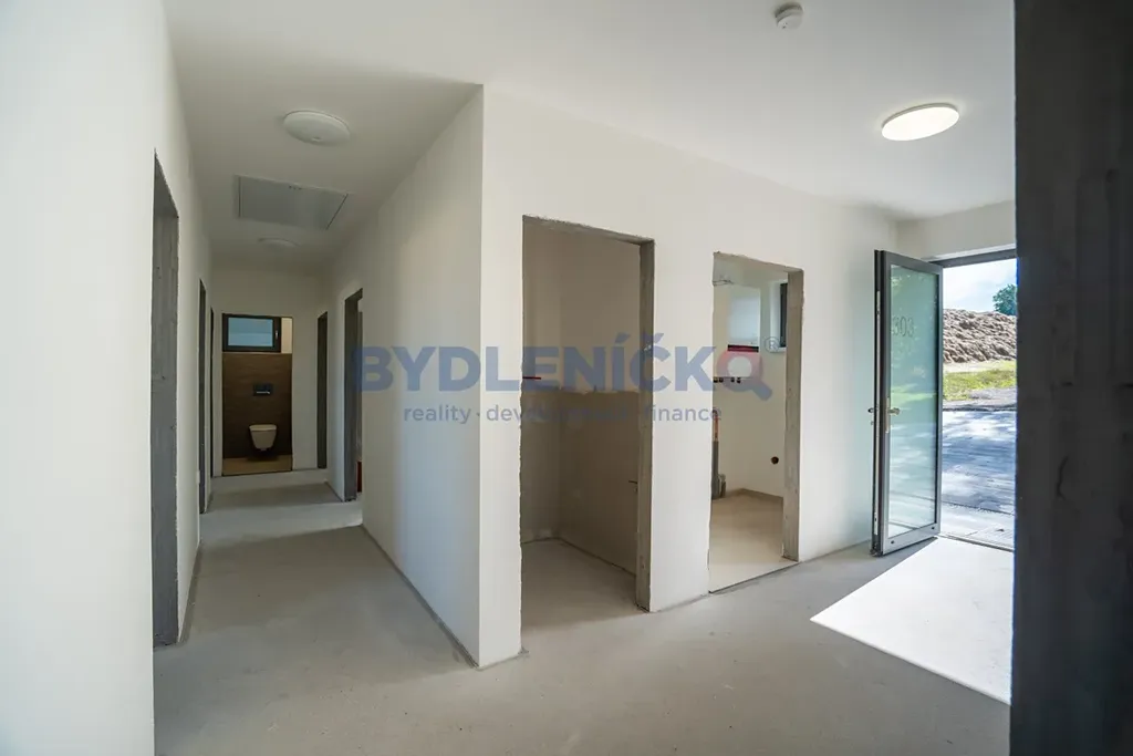 Z chodby se dál dostaneme do ložnice, 3 pokojů, velké koupelny s plánovanou vanou i sprchovým koutem a dalšího samostatného WC.