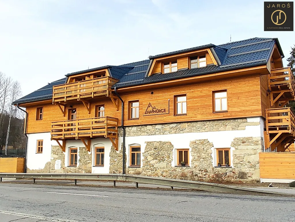 Nabízíme k prodeji moderní a plně vybavený apartmán o dispozici 2+kk, 48 m² s balkonem, který se nachází ve 2. nadzemním podlaží nově vystavěného apartmánového domu v obci Hůrka, nedaleko Horní Plané a lipenské přehrady.