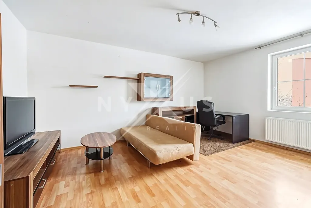 Dispozice bytu zahrnuje obývací pokoj s kuchyňským koutem, samostatnou ložnici, koupelnu s WC a předsíň. Byt je částečně vybavený, připraven k nastěhování. Součástí pronájmu je vlastní parkovací stání.