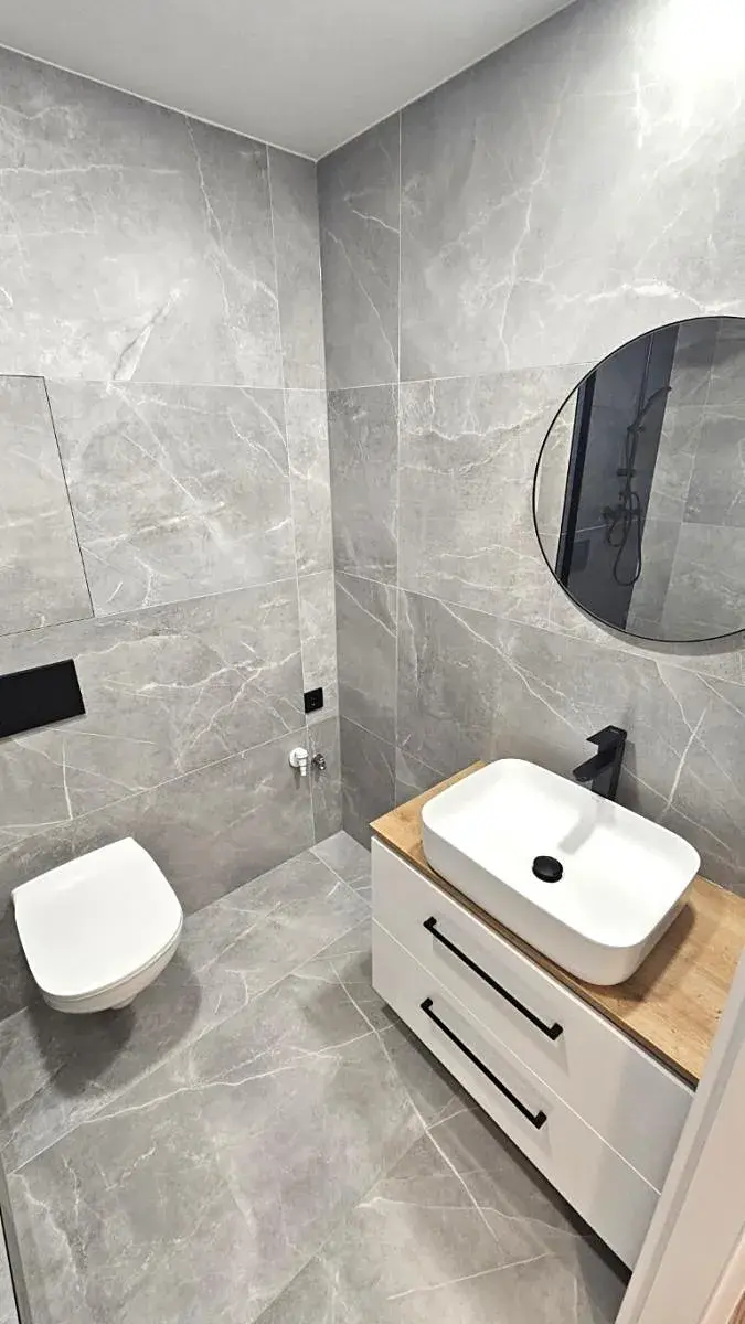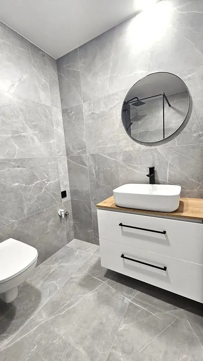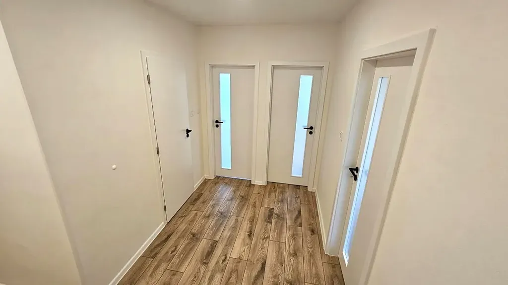 V bytě proběhla velice zdařilá a nákladná rekonstrukce. V kuchyni je moderní kuchyňská linka s vestavnými kamny ,varnou deskou a digestoří. V koupelně je prostorný sprchový kout, umyvadlová skříňka se zrcadlem a WC. Jsou zde nové interiérové dveře s obložkami a všechny podlahy jsou sjednoceny do jednoho odstínu,