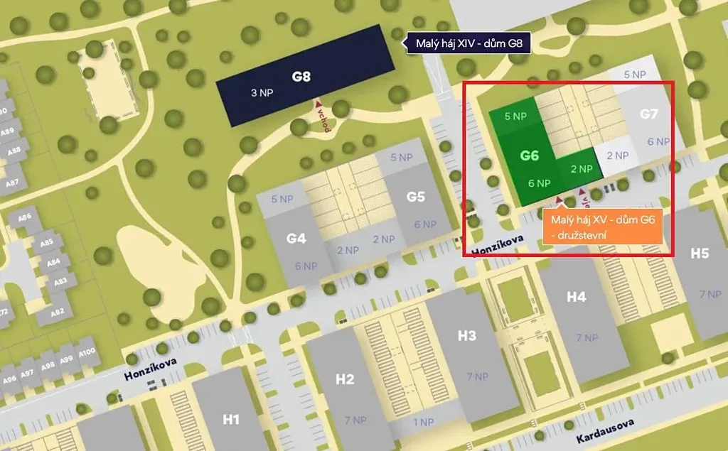 Nabízíme postoupení nového družstevního bytu 1+kk v projektu Malý háj XIII (dům G6), ulice Honzíkova úspěšného developera FINEP.