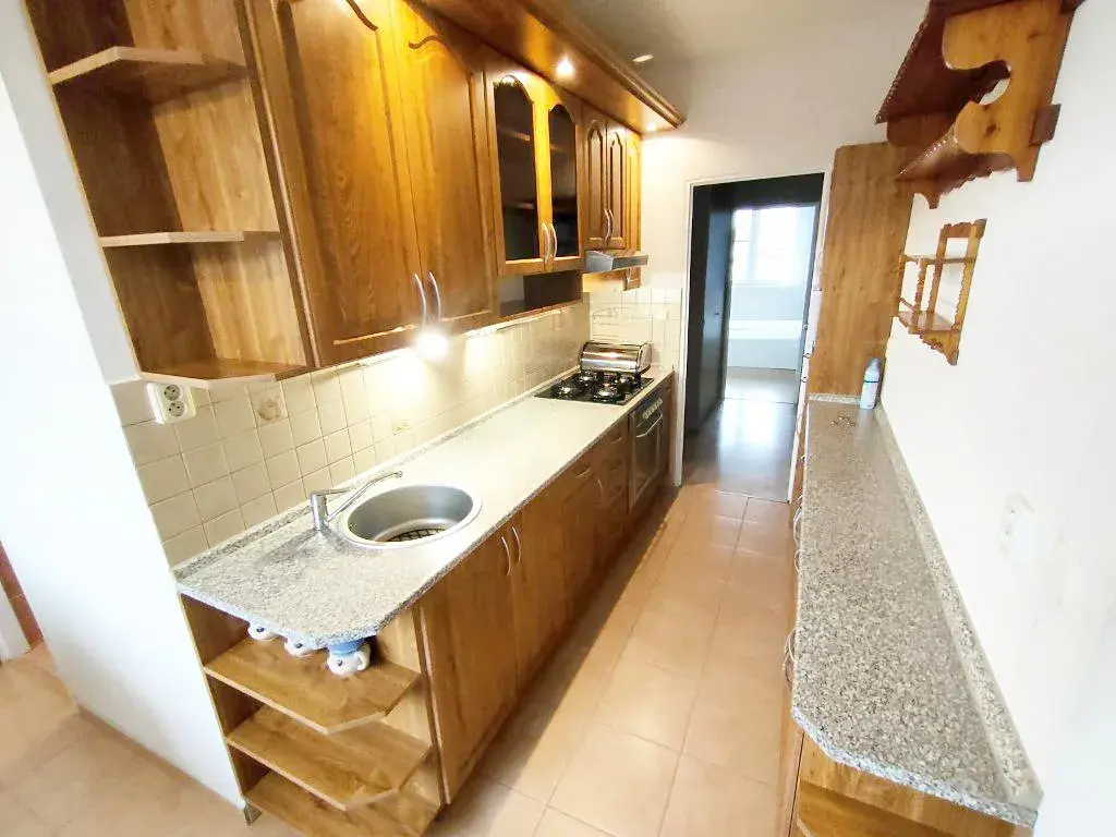 Byt je v pěkném stavu, kompletně vybaven. V kuchyni se nachází lednice, stůl a židle, v obývacím pokoji stěna a pohovka, v ložnici šatní skříň a postel. V koupelně je pro nájemce připravena pračka a sušička.