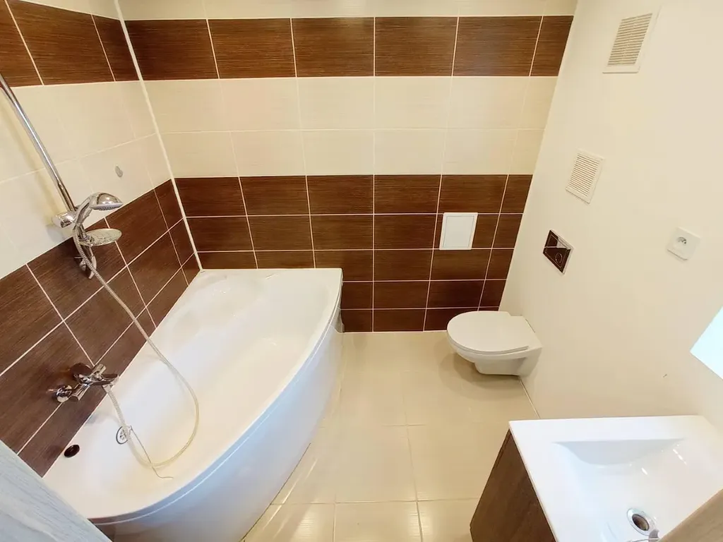 Byt prošel částečnou rekonstrukcí. V kuchyni je pěkná kuchyňská linka s vestavnými kamny a varnou deskou s digestoří. V koupelně je prostorná vana, umyvadlová skříňka se zrcadlem a WC.