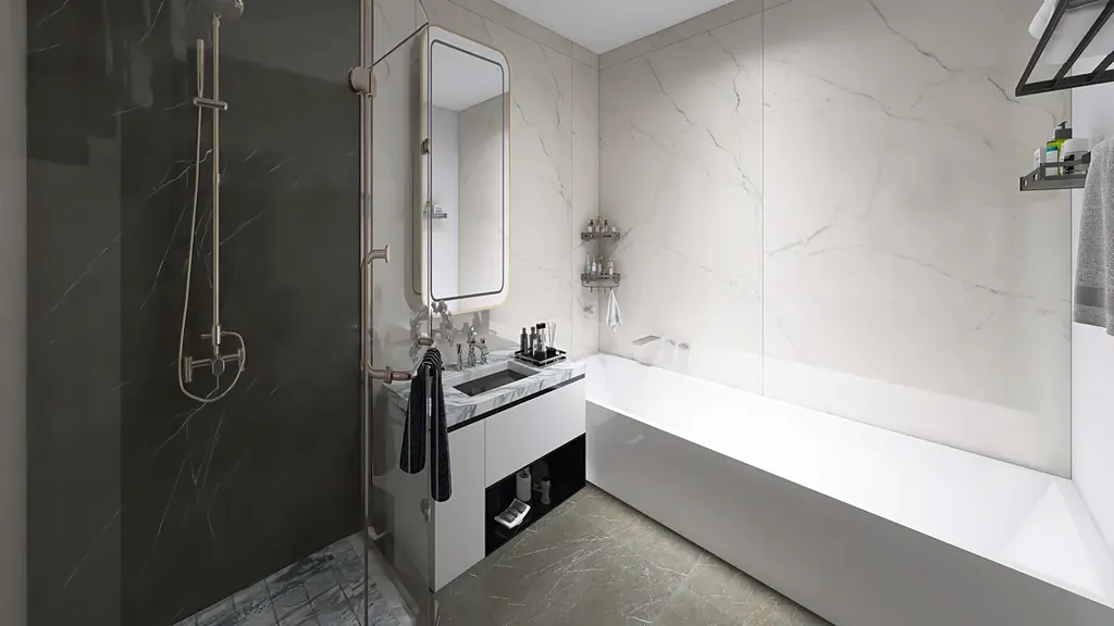 Cena domu zahrnuje dlažbu a obklady v hladkém dekoru; výběr jiných dekorů je možný po individuální dohodě.