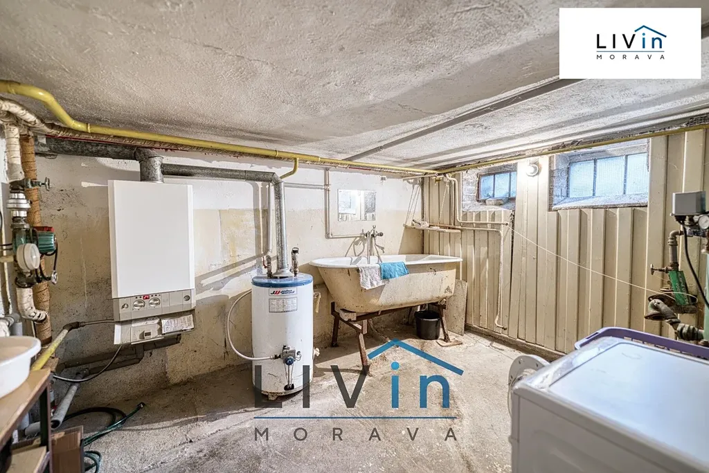 Dům je dispozičně řešen tak, že v 1. PP (suterénu) se nachází dvě větší místnosti (22,8 m² a 11 m²), dále komora (2,1 m²) a chodba se schodištěm (4 m²). V jedné místnosti je technické zázemí domu s plynovým kotlem, bojlerem a pračkou, druhá místnost je vhodná pro skladování potravin nebo jako dílna.