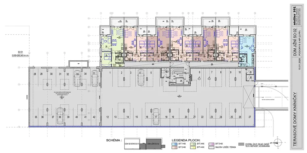 Nabízíme k prodeji byt o dispozici 2+kk s celkovou podlahovou plochou 52,48 m², který disponuje šatnou a dvěma terasami o celkové výměře 16,61 m². Byt se nachází ve 2.NP moderního terasového viladomu s výtahem v projektu U Hlubočku, dům A, v atraktivní lokalitě Brno–Kníničky. Orientace bytu je na východ s krásným výhledem na Mniší horu. Kupní cena zahrnuje parkovací stání v domě. S možností nastěhování ihned.