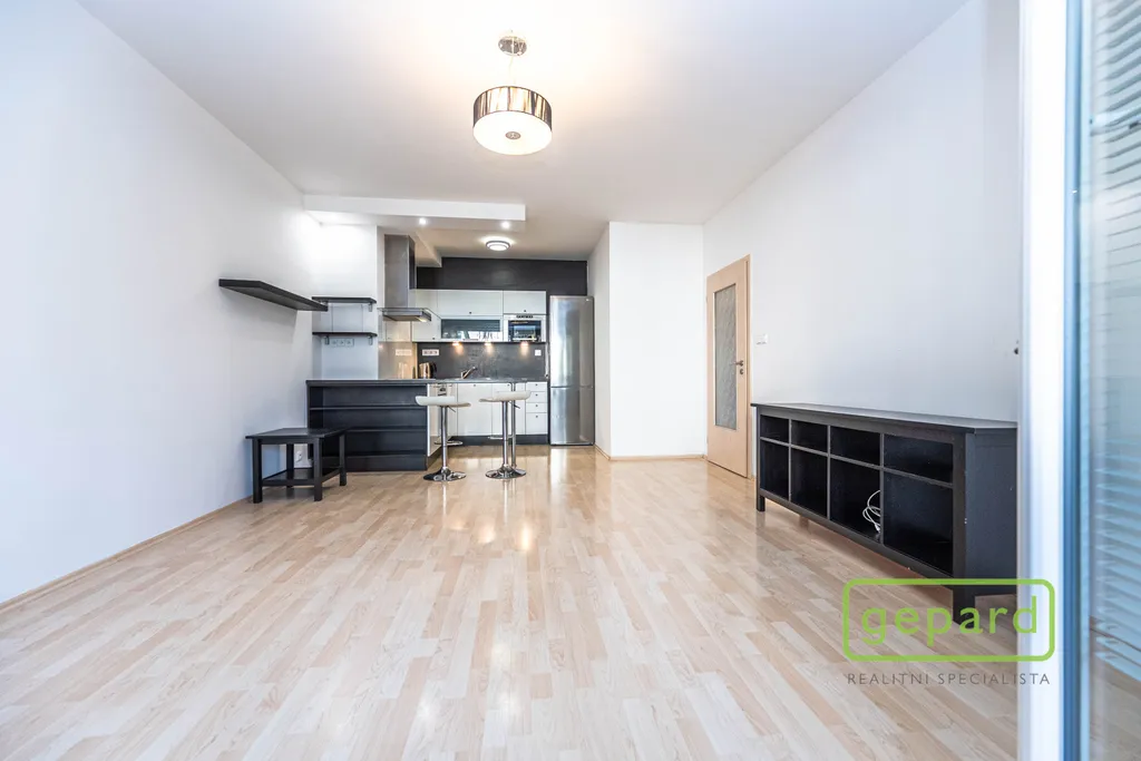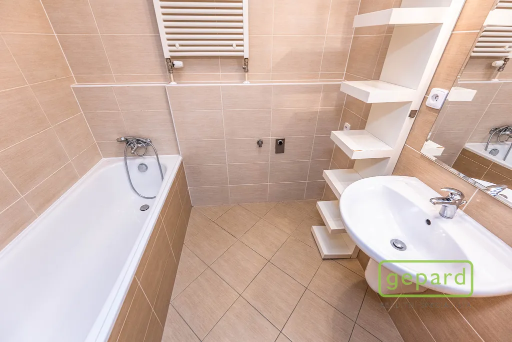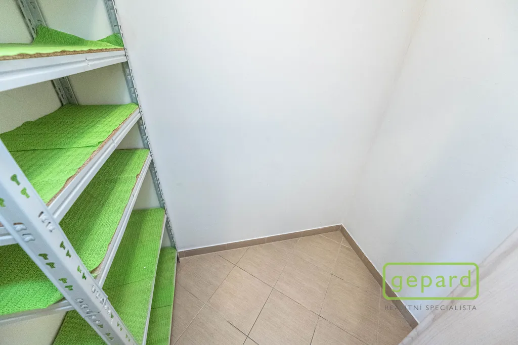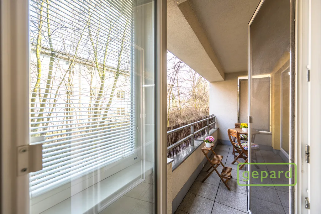 Na lodžii je možné vstoupit z obou pokojů. Kuchyňský kout je vybaven kuchyňskou linkou se spotřebiči: lednicí s mrazákem, varnou deskou, digestoří, elektrickou troubou a mikrovlnnou troubou. V koupelně je vana, toaleta je oddělená. V pokoji (bez kuchyňského koutu) se nachází velká vestavěná skříň, v komoře jsou police, další úložné prostory jsou k dispozici ve sklepě. Vybavení zobrazené na fotografiích je součástí pronájmu. Na oknech jsou vnitřní žaluzie a sítě proti hmyzu. Parkování je možné u domu v rezidenční placené zóně.