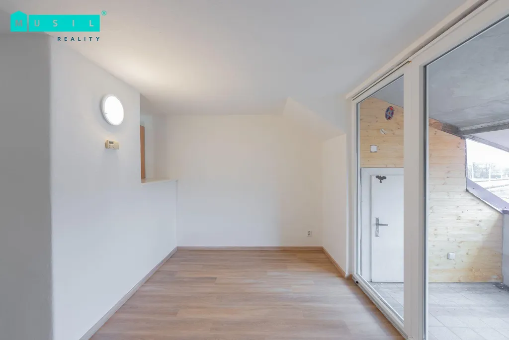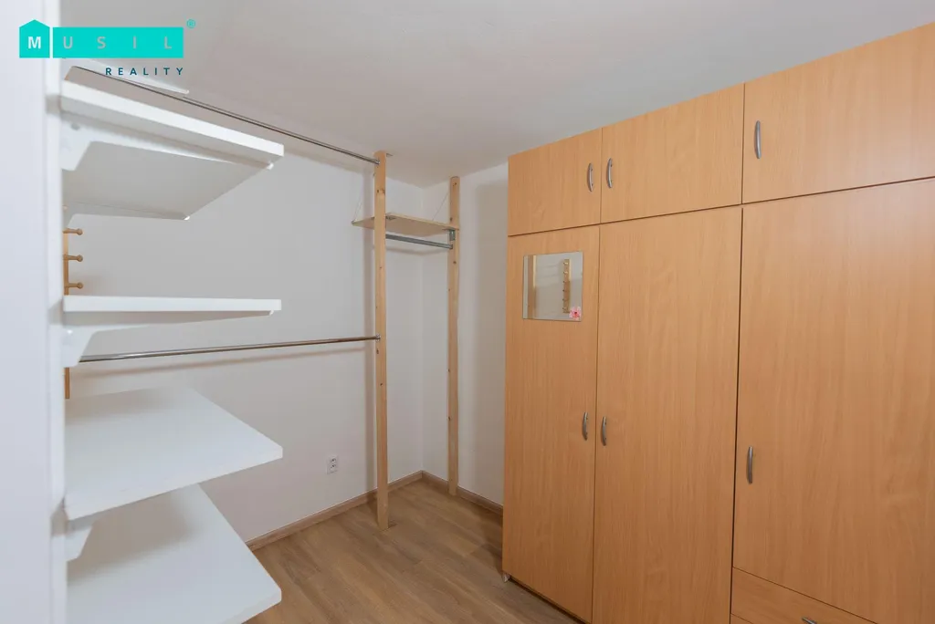 Dispozice bytu nabízí prostorný obývací pokoj se šatnou a lodžií, samostatnou kuchyni s novou kuchyňskou linkou vybavenou indukční varnou deskou, horkovzdušnou troubou, dřezem a prostorem pro pračku. Velkou výhodou je samostatná spíž s dalším úložným prostorem. Jídelní část je elegantně řešena formou barového pultu s židlemi.