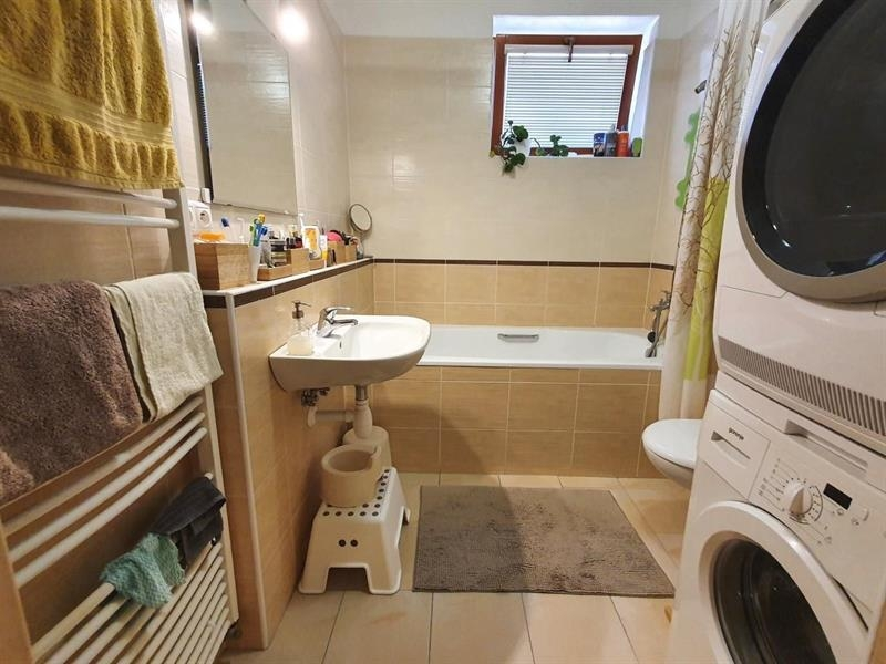Byt sestává z prostorného obývacího pokoje (33 m2) se vstupem na obytnou lodžii (5 m2), ložnice (16 m2), koupelny (5,3 m2) a vstupní chodby (5 m2). Byt je nezařízený nábytkem (vybavení na fotu patří původnímu nájemci). K dispozici je moderní kuchyňská linka se sklokeramickou varnou deskou a el. troubou, digestoř, lednice s mrazákem, myčka a velká šatní skříň v ložnici a skříň v chodbě. V prostorné koupelně s denním světlem je vana, umývadlo a WC. Na podlaze je plovoucí podlaha a dlažba. Topení je ÚT. K bytu náleží 1 garážové stání v přízemí domu.