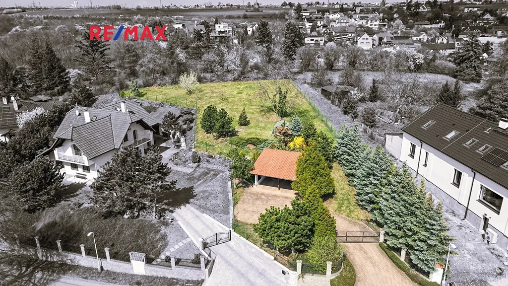 Nabízíme ke koupi zajímavý prostorný pozemek o velikosti 1550 m2. Pozemek se nachází uprostřed zástavby rodinných domů na mírně svažitém terénu s jižní orientací. Vjezd na pozemek je posuvnou bránou na dálkové ovládání z klidné komunikace s minimálním provozem, za vjezdovou bránou je prostranství ze zámkové dlažby a otevřená garáž pro dva automobily. Střecha garáže je šikmá, orientovaná na jih, tedy s možností umístit zde výhledově na střeše fotovoltaiku na nabíjení např. elektromobilů. Vpravo od garáže, při východní hraně pozemku, je pruh o šířce více než 6 metrů, kterým se dostanete na horní část pozemku vhodnou k zastavění rodinným domem. Tato nejširší část pozemku je už více rovinatá a je ze tří stran obklopena zelení, kde se v sousedství, dle územního plánu, již nic dalšího nemůže stavět, což garantuje budoucímu vlastníku dostatečný klid a soukromí a zeleň v okolí.