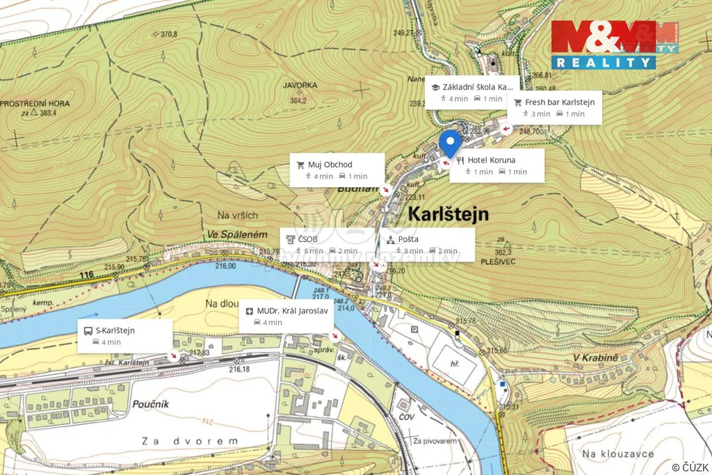 K pronájmu dvougenerační prostorný byt 3+kk (95 m2) s velkou terasou (38 m2) v oblíbeném městysu Karlštejn. Byt se nachází ve zvýšeném přízemí a v obytném podkroví domu. Dispozice: v přízemí je obývací pokoj s kuchyňským koutem a ložnice, koupelna s vanou, komora a samostatná toaleta. V podkroví je velká místnost se vstupem na terasu a výhledem na Hrad, malá kuchyňka a koupelna se sprchovým koutem a toaletou. V bytě je kuchyňská linka a sporák s troubou. Topení zajišťuje elektrický kotel a po bytě je rozvedeno ústřední topení. Teplou vodu ohřívá bojler, voda je z veřejného vodovodu a dům je napojen na kanalizaci. Byt je volný ihned. Více informací u makléře.