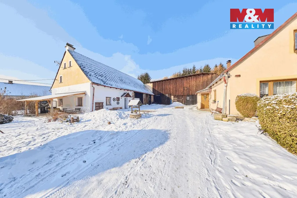 Nabízíme k prodeji usedlost (dva rodinné domy spojené prostornou stodolou) s pozemky v malebné vísce Bohdašín. Oba domy jsou zděné, napojené na veřejný vodovod, odpady stažené do septiku, vytápěny jsou společným kotlem na tuhá paliva, zavedená elektřina, internet, ohřev teplé vody bojlerem a průtokovým ohřívačem. Usedlost je ideální volbou pro ty, kteří hledají klidné bydlení s dostatkem soukromí. Jeden dům (1883) je nyní využíván jako prosperující pension s kuchyní, dvěma pokoji, koupelnou. Druhý dům (1930) je využíván pro rodinné bydlení. Dispozice: kuchyně, chodba, obyvák, ložnice, koupelna a v 2NP tři pokoje, šatna. Stav nemovitostí je dobrý, probíhá průběžná revitalizace obou domů a realizace fotovoltaiky. Občanská dostupnost dobrá. Jedná se o turisticky atraktivní lokalitu. Teplické, Adršpachské i Broumovské skály. Je tu dostatek možností na cyklo výlety. V zimě jsou upravené běžkařské trasy a sjezdovka.
