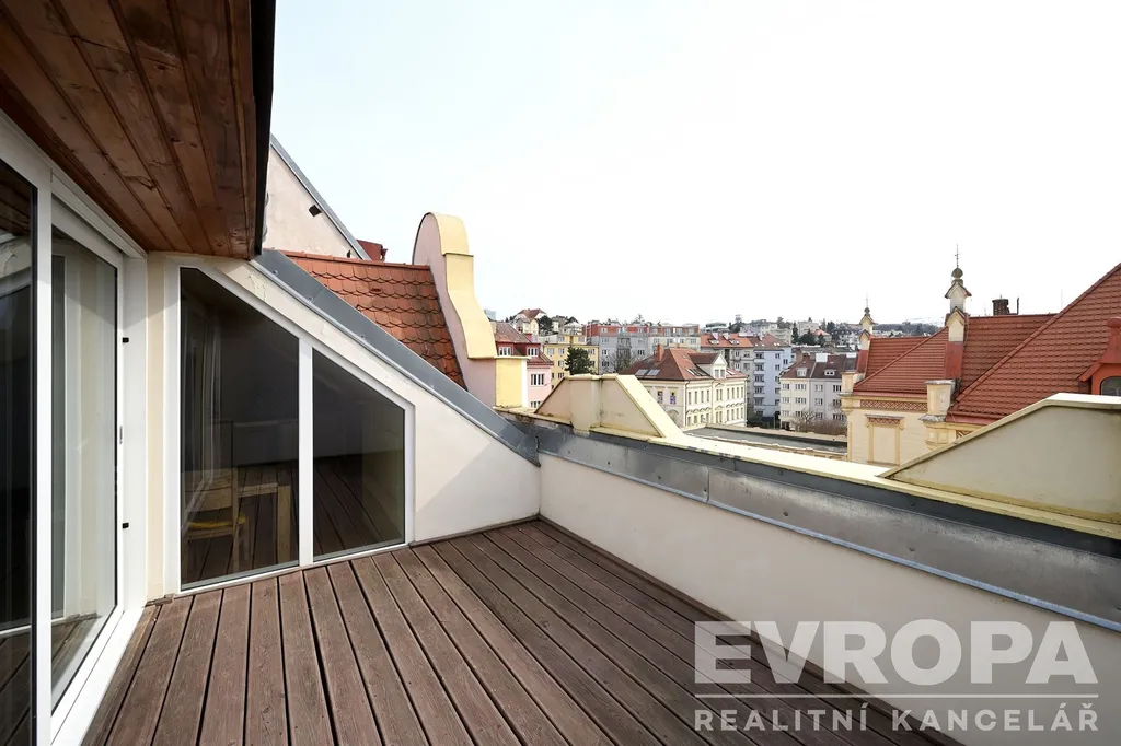 Nabízíme k pronájmu kompletně zařízený podkrovní mezonetový byt 2+kk o rozloze 105 m 2, situovaného v 56 N.P. v činžovním domě s výtahem v klidné ulici v Podolí se střešní terasou s výhledem na Prahu. Byt je prostorný, světlý, orientovaný na jižní stranu. Výhodná lokalita s plnou občanskou vybaveností v blízkém okolí, v pěším dosahu MHD s dobrou dostupností na stanice metra a nábřeží Vltavy. V těsné blízkosti bytu je památka Vyšehrad s parkem. Nedaleko je bazén a koupaliště Podolí a Žluté lázně. Podél Vltavy vede oblíbená cyklostezka. Byt má ve spodní úrovni halu, obývací pokoj se vstupem na terasu, plně vybavenou kuchyňskou linku, koupelnu s vanou a toaletou. V patře je hala s výstupem na střešní terasu s nádherným výhledem na Vyšehrad, ložnice, a plně vybavená koupelna se sprchovým koutem a toaletou. Byt se pronajímá kompletně zařízený, včetně nábytku a všech spotřebičů. Ve vnitrobloku domu je možnost parkování, které je v ceně nájmu. Měsíční částka pro platbu nájmu je 37.000,Kč a 7.000,Kč poplatky. K dispozici ihned. Kauce jeden měsíční nájem 37.000,Kč. Pro více informací kontaktujte realitního makléře. Neplatíte provizi RK.