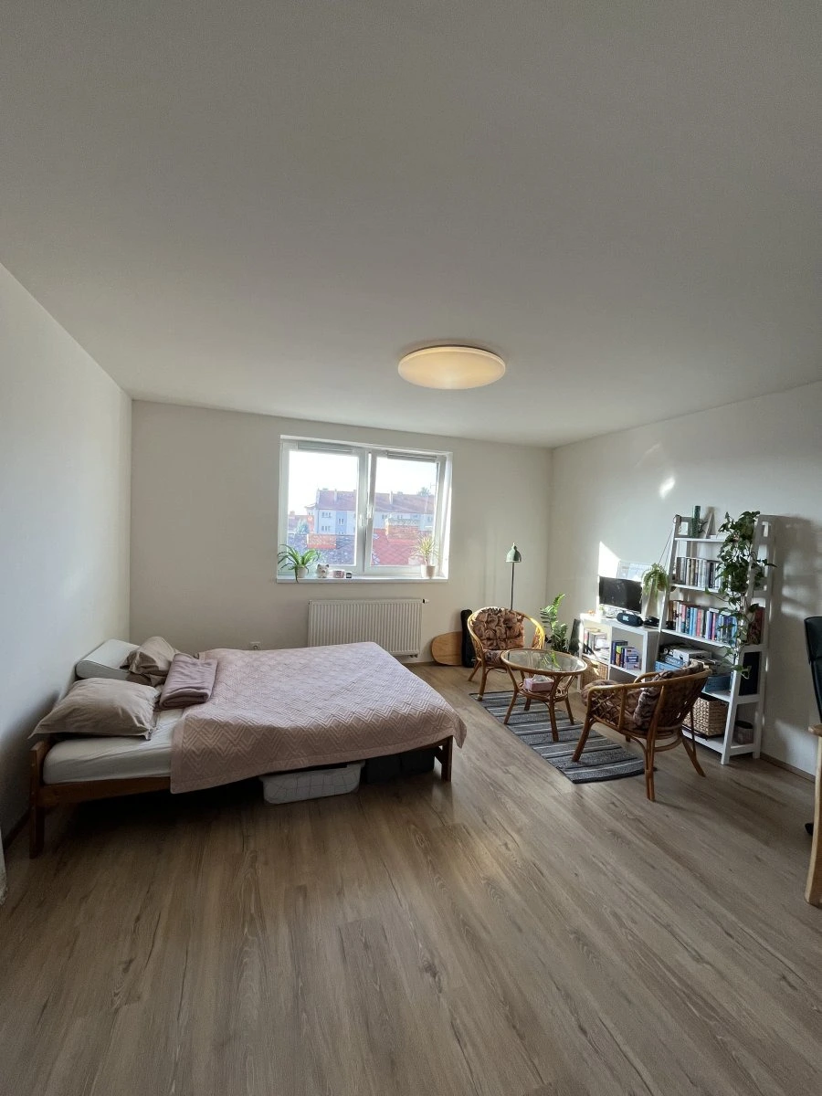 Interiér je nevybavený, takže si jej snadno doladíte přesně podle svého stylu. Dispozice nabízí příjemnou obytnou část s kuchyňským koutem a dostatek místa na vše podstatné – od pohodlné postele po pracovní zónu. Díky novostavbě získáte pohodlí současného bydlení, klidné zázemí a kvalitní standard.