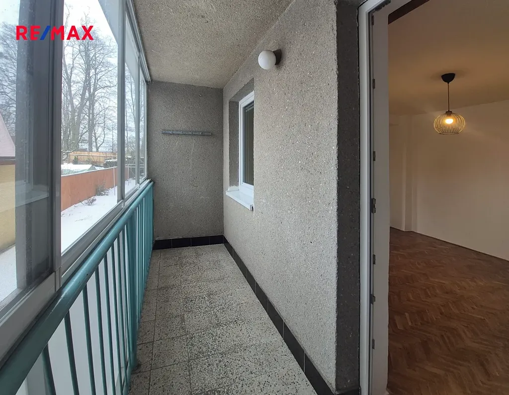Byt se sestává z malé předsíně, kuchyně, obývacího pokoje, ložnice, lodžie, komory (spíže) a sociálního zařízení (koupelny s WC). Byt má nová plastová okna, novou kuchyňskou linku, nový kombinovaný sporák a novou pračku, dále jsou nově zrenovovány parkety a v kuchyni je nová plovoucí podlaha.