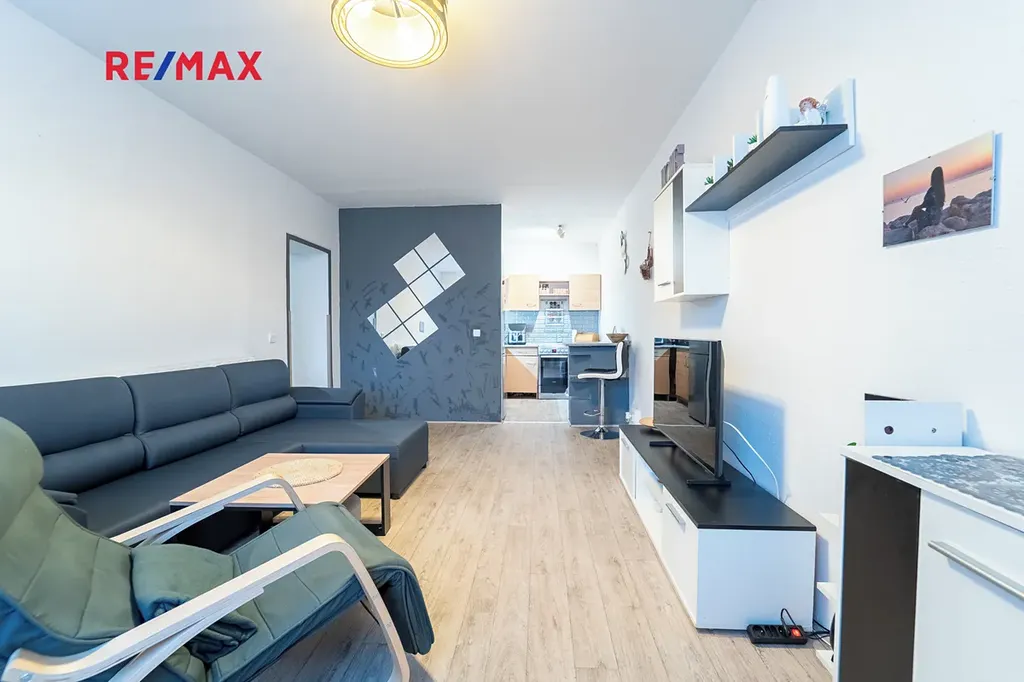 Byt je částečně vybaven a po vstupu do něj oceníte jeho praktické uspořádání. V obývací části je dostatek prostoru pro umístění nábytku a vytvoření útulného domova.