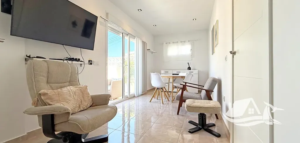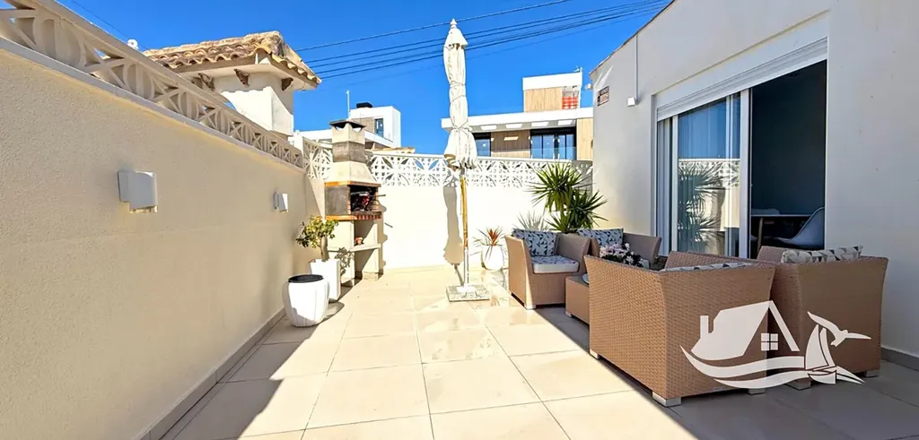 Na prodej je krásně zrekonstruovaný přízemní bungalov v oblíbené a vyhledávané části Torrelamata v Torrevieje. Nachází se v uzavřeném rezidenčním komplexu, který nabízí soukromí, klid a přitom výbornou dostupnost k moři i všem službám. Díky rohové poloze a orientaci na jih má dům celodenní přísun slunečního světla a působí mimořádně svěže a útulně.