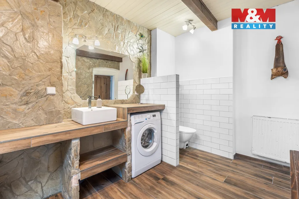 Součástí prodeje je i zahrada a prostorný sklep o výměře 11 m², garáž, zimní zahrada, dílna, menší prostor využívaný jako udírna. Celková atmosféra interiéru je velmi příjemná a nabízí dostatek místa pro rodinný život.