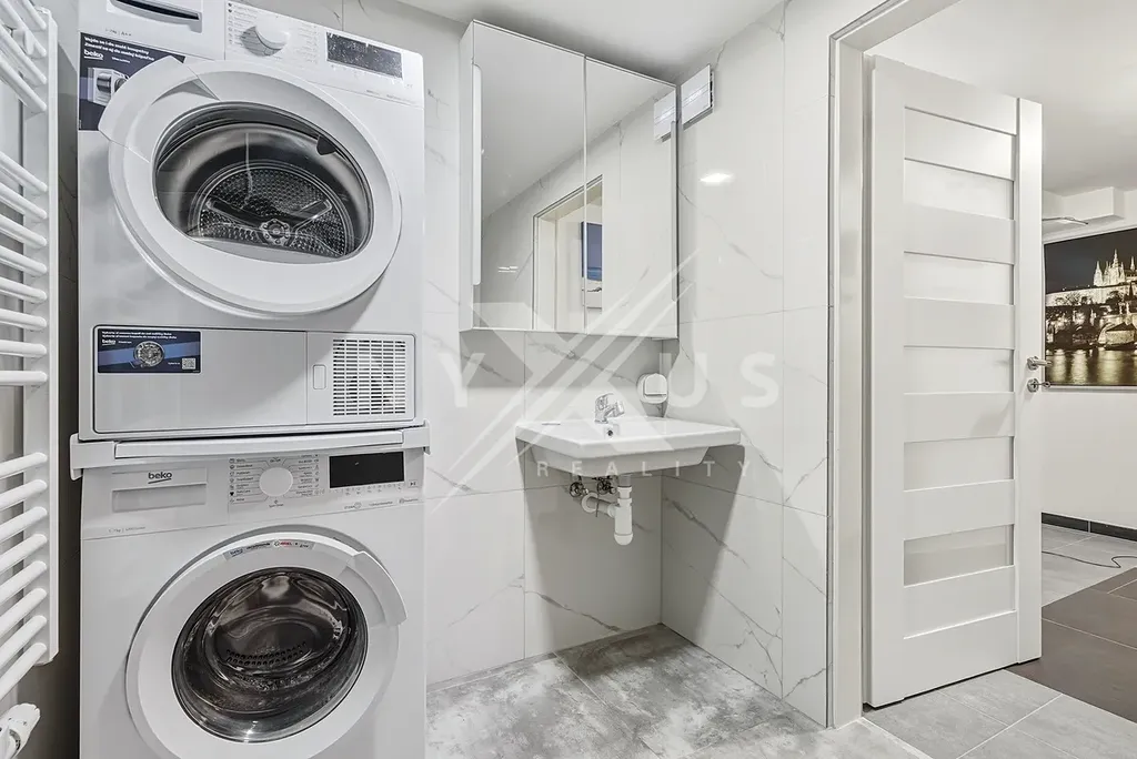 Vybavení (postel, pohovka, kuchyňská linka) součástí prodeje - používáno cca 1 rok. Nové spotřebiče - pračka se sušičkou, trouba, indukční varná deska, myčka na nádobí. Internet - vysokorychlostní připojení (400 Mb/s download i upload).