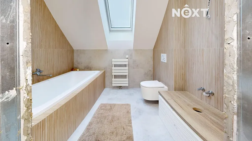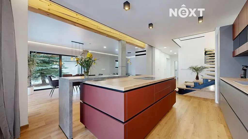 Interiér je vzdušný, vkusný a sladěný do moderního stylu, kde každý detail dává smysl. Dvě podlaží chytře rozdělují denní a noční zónu – v přízemí prostorný obývací pokoj s kuchyní a přímou návazností na budoucí terasu, v patře klid pro ložnice, dětské pokoje či pracovnu. Terasa čeká na dokončení, což je skvělá příležitost dotvořit ji přesně podle vašich představ. Praktickou stránku zajišťuje garáž přímo v domě, takže nákupy v dešti už nebudou drama, také dostatek úložných míst – od šatny po technické zázemí – které ocení každá rodina v domě o dispozici 5+kk. Technicky je dům radost popsat: pasivní standard, trojskla, centrální větrání s rekuperací a vytápění kotlem na pelety drží náklady na provoz na minimu a komfort na maximu. Energetický štítek PENB A dává jistotu, že teplo neuniká, čerstvý vzduch proudí a vy si užíváte zdravé vnitřní klima bez kompromisů. Místnosti jsou světlé, tiché a útulné – ideální na snídani s výhledem do zahrady i večerní odpočinek po práci.