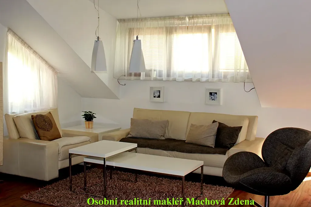 Jedná se o podkrovní, dvoupatrový, kvalitně zařízený byt o dispozici 3+kk s prostornou terasou, který se nachází v 6. – posledním – patře cihlové novostavby s výtahem. Byt má celkovou plochu 87,65 m², terasa má výměru 14,50 m², celková užitná plocha včetně terasy tak činí 102,15 m².