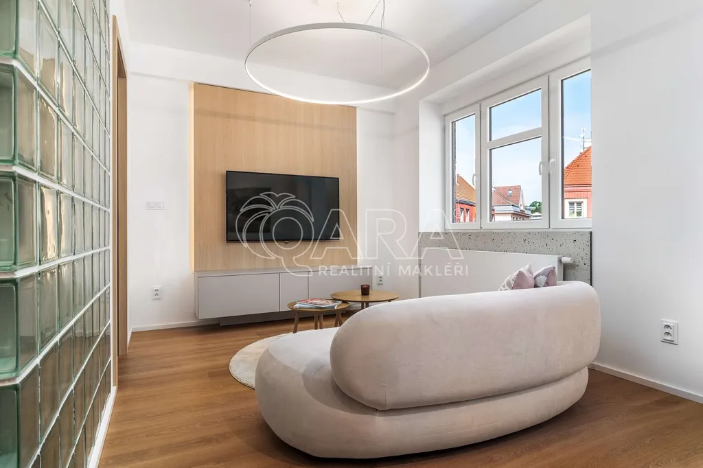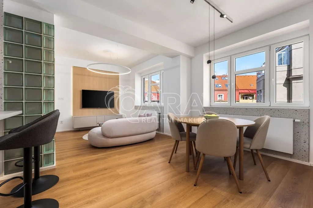Nabízíme k pronájmu exkluzivní byt o velikosti 44,79 m² + sklep 2,99 m², který se nachází ve 3. podlaží cihlového domu bez výtahu. Byt právě prošel precizní celkovou rekonstrukcí pod vedením architekta – byly vyměněny podlahy, okna, příčky, rozvody elektřiny, vody i topení. Při rekonstrukci byl kladen důraz na funkčnost, design a vysoký standard provedení.
