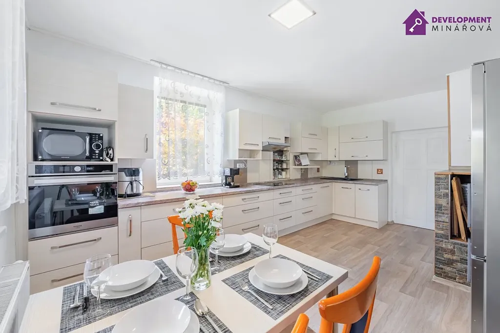 • Dispozice 4+1, užitná plocha 130,41 m2, garáž s kotelnou 32,15 m2, prostor připravený pro novou vestavbu 53,6 m2