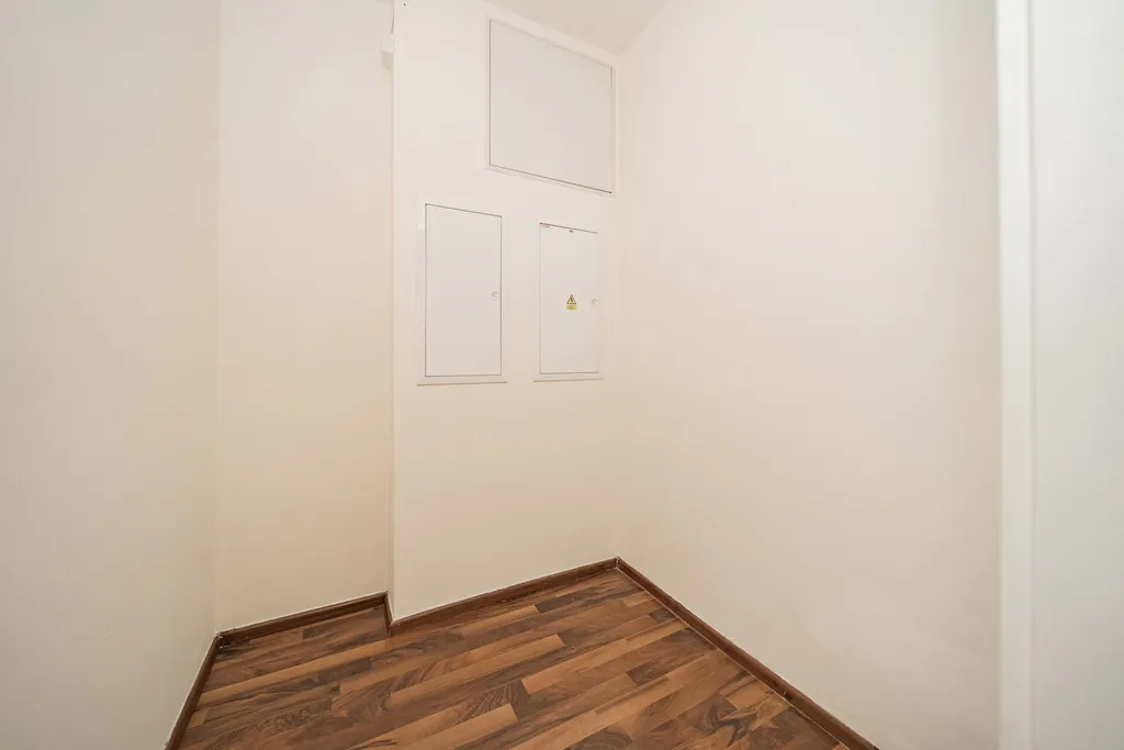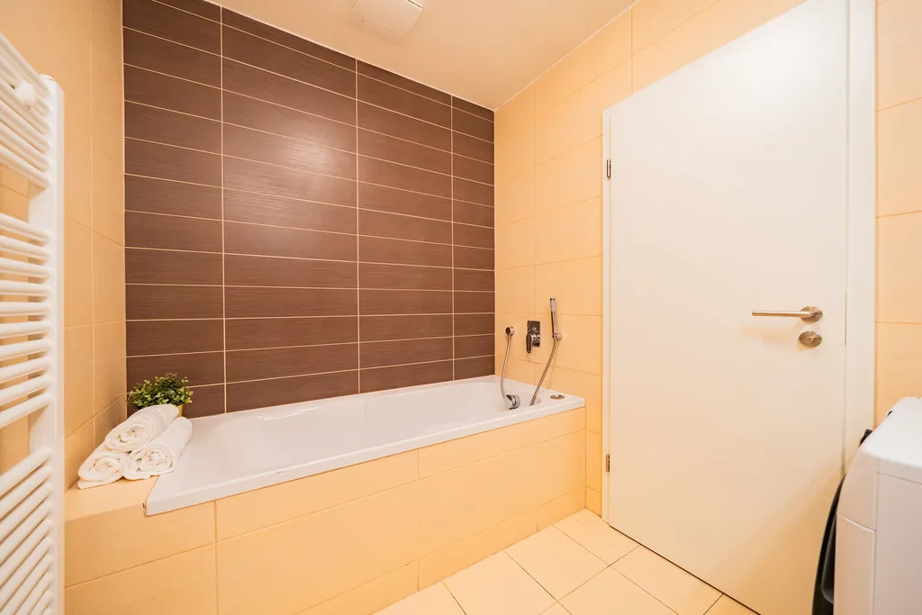 Byt je navržen tak, aby bylo možné jeho praktické a funkční zařízení. Vstupní dveře bytu jsou certifikovány 3. třídou bezpečnosti a je zde příprava pro instalaci elektronického bezpečnostního systému. Podlahová krytina je v pokojích plovoucí podlaha a v chodbě a koupelnách je instalována dlažba. K bytu náleží parkovací místo v přízemí budovy a sklep o rozloze téměř 3 m2, oboje je již zahrnuto v prodejní ceně.