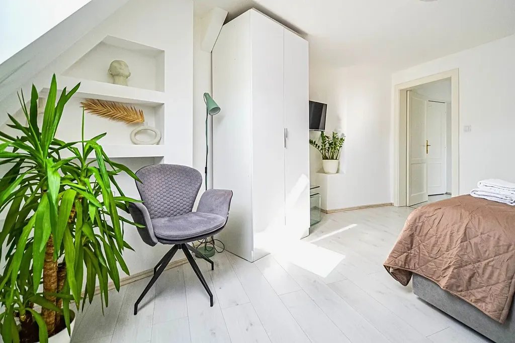 Nespornou výhodou tohoto bytu je naprosto bezproblémové provozování krátkodobých pronájmů, jelikož celý dům je využíván za tímto účelem. V případě zájmu je možné na pronájmy okamžitě navázat a pokračovat, bez nutnosti dalších investic spojených s rekonstrukcí nebo vybavením bytu.