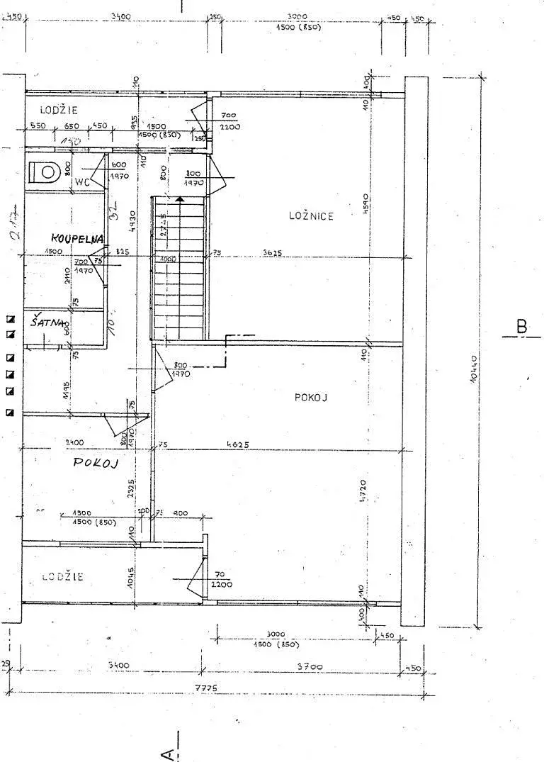 horní patro dvě prostorné ložnice s balkonem, menší ložnice, koupelna s vanou, samostatná toaleta, vestavěná skříň.
