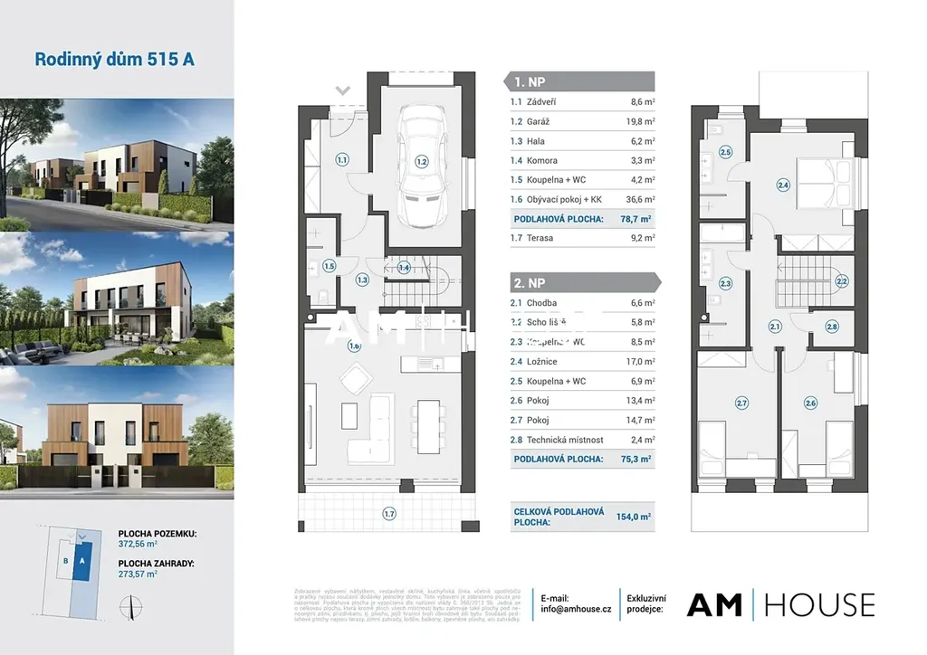 Tento unikátní byt se nachází v moderním dvojdomě na pozemku o rozloze 372,56 m². Prodává se jako samostatná bytová jednotka zabírající celou polovinu domu se samostatným vchodem, garáží s možností přestavby na plnohodnotnou místnost (např. pracovna nebo pokoj) díky podlahovému vytápění, a dvěma venkovními parkovacími stáními.