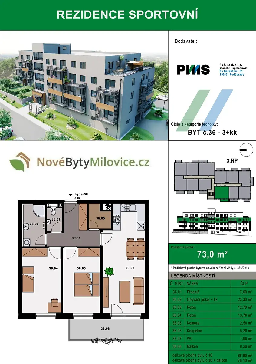 Dovolte mi představit jeden ze 44 krásných bytů v nově vznikajícím projektu Rezidence Sportovní v Milovicích. Výstavba nyní započala a realizuje ji společnost s dlouholetou tradicí a praxí v oboru, firma PMS Poděbrady.