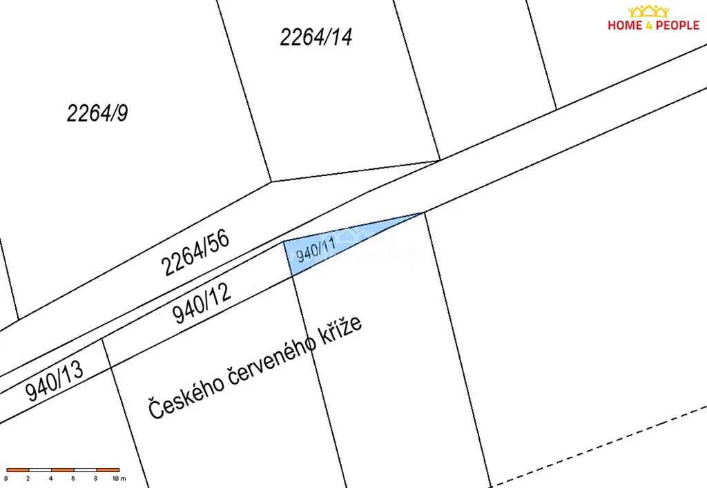 Pozemek má celkovou výměru cca 20 m², předmětem prodeje je tedy ideální polovina podílu.