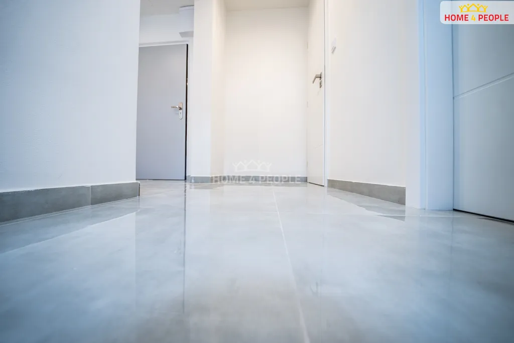 Podlahy jsou řešeny kombinací zachovaných dřevěných parket, kvalitního vinylu a velkoformátové italské dlažby, která podtrhuje moderní charakter interiéru. Vytápění a ohřev vody jsou centrální, plyn je aktuálně využíván pouze k vaření. V bytě je zavedena optická přípojka. K bytu náleží prostorný suchý sklep (3m).