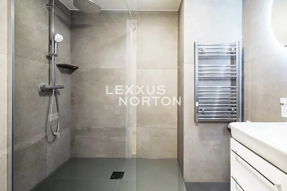 Byt je vybaven výtahem a inteligentní domácností Loxone. Chodba a ložnice disponují vestavěnými skříněmi a koupelna je vybavena sprchovým koutem. V celém bytě jsou dřevěné podlahy s podlahovým topením. Dále je k dispozici klimatizace a elektricky ovládané venkovní žaluzie.