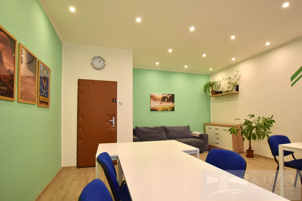 Kancelář je velmi vzdušná díky velkým oknům a dostatku denního světla. Lokalita Jagellonská nabízí dobrou dostupnost, občanskou vybavenost v okolí (obchody, kavárny, služby) a příjemné prostředí pro klientské schůzky. Snadná dostupnost MHD je samozřejmostí.