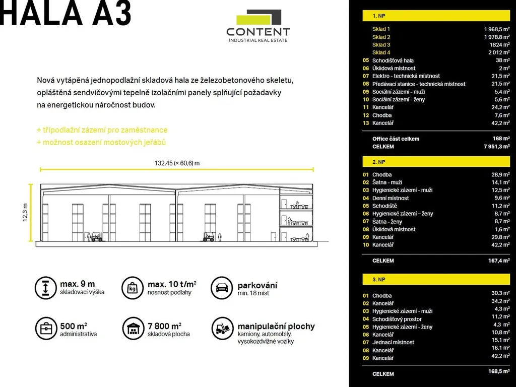 - nová vytápěná jednopodlažní skladová hala ze železobetonového skeletu