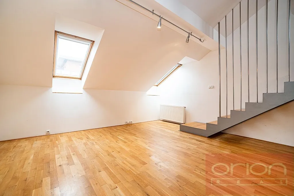 Pronájem mezonetového bytu 3+kk (114 m²) + terasa (20 m²) v činžovním domě s výtahem v oblíbené lokalitě v Praze 5 - Smíchov. Tento hezký byt má