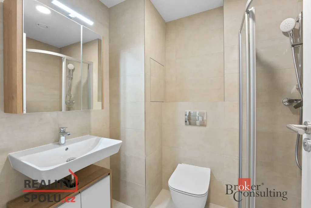 Nabízíme k pronájmu světlý byt 2+kk o užitné ploše 56 m² ve 4. patře novostavby s výtahem. Byt disponuje prostorným obývacím pokojem s kuchyňským koutem vybaveným moderními spotřebiči, ložnicí, koupelnou se sprchovým koutem a WC. Balkón s příjemným výhledem, vlastní parkovací stání a sklepní kóje jsou součástí nabídky. Okna jsou opatřena předokenními žaluziemi.