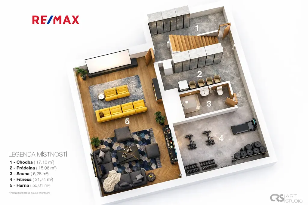 Dispozice na třech podlažích je praktická i pro kombinaci funkcí (rodinné bydlení + práce, dlouhodobé/korporátní ubytování, vícegenerační režim apod.).