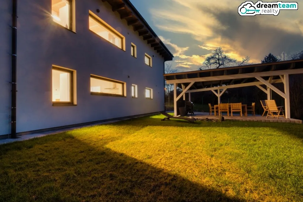 Novostavba pasivního domu ještě téměř vonící čerstvou malbou a dřevem! Ale nebojte, všechny moderní technologie už jsou v plném provozu. Tepelné čerpadlo, rekuperace vzduchu, zelená střecha, energetická třída A