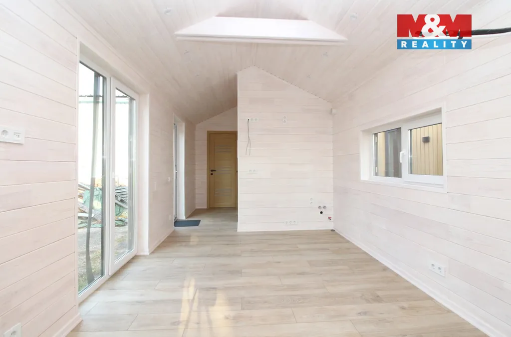 Prodej nového zatepleného mobilního domu se sedlovou střechou. V interiéru jsou elektrické rozvody, vytápění je v koupelně podlahové jinak nutno řešit elektrickými přímotopy v jedné místnosti je příprava pro krbová kamna. Vybavení je dle fotografií. Více informací u makléře.
