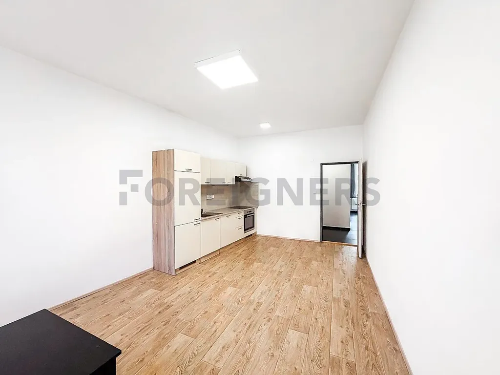 Hlavní obytný prostor s kuchyňským koutem má 21,27 m² a je vybaven moderní kuchyňskou linkou včetně vestavěných spotřebičů (varná deska, trouba, digestoř, mikrovlnná trouba, myčka, lednice s mrazákem). Samostatný pokoj o velikosti (12,87 m² ) slouží jako ložnice a nabízí dostatek prostoru pro manželskou postel, šatní skříň i pracovní kout.