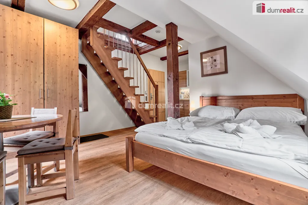 Exkluzivně nabízíme k prodeji luxusní mezonetový apartmán v rezidenci Horská zahrada v Krušných horách, pouhých 100 metrů od lanovky skiareálu Plešivec s vlastním parkovacím místem v ceně. Tento moderně zařízený byt o dispozici 2+kk se nachází v 1. patře hlavní budovy a je po kompletní rekonstrukci. Nabízí pro nové vlastníky plochu 38,50 m² a veškeré komfortní vybavení včetně centrálního plynového vytápění a internetového připojení. Nehledejte dál, tady najdete svůj nový domov v horském ráji! Zde si nepořizujete pouze apartmán, ale soukromý kousek hor - pořizujete si horskou zahradu na slunečním jižním svahu pro váš klid a relaxaci. Součástí koupě apartmánu je i podíl na pozemku (zdarma) v uzavřeném areálu o velikosti 3800 m², s krytým posezením a grilem. Dále zde najdete lyžárnu, kolárnu, dětské hřiště, parkoviště a mnohé další. Možností je i koupě dalších volných apartmánů v hlavní budově různých dispozic, či samostatnou chatu. Pro více informací nás neváhejte kontaktovat nebo navštivte web nemovitosti. Ev. číslo: 654608.