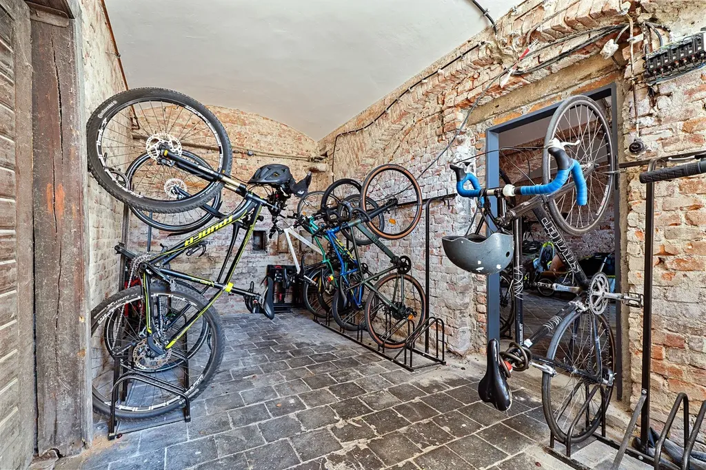 Kromě poměrně velkého sklepa je možnost využít společné uzamykatelné kolárny ve vnitrobloku domu, kde najdeme také parkovací místa. Parkovací místo je nekryté a využívání je součástí celkové ceny za pronájem.