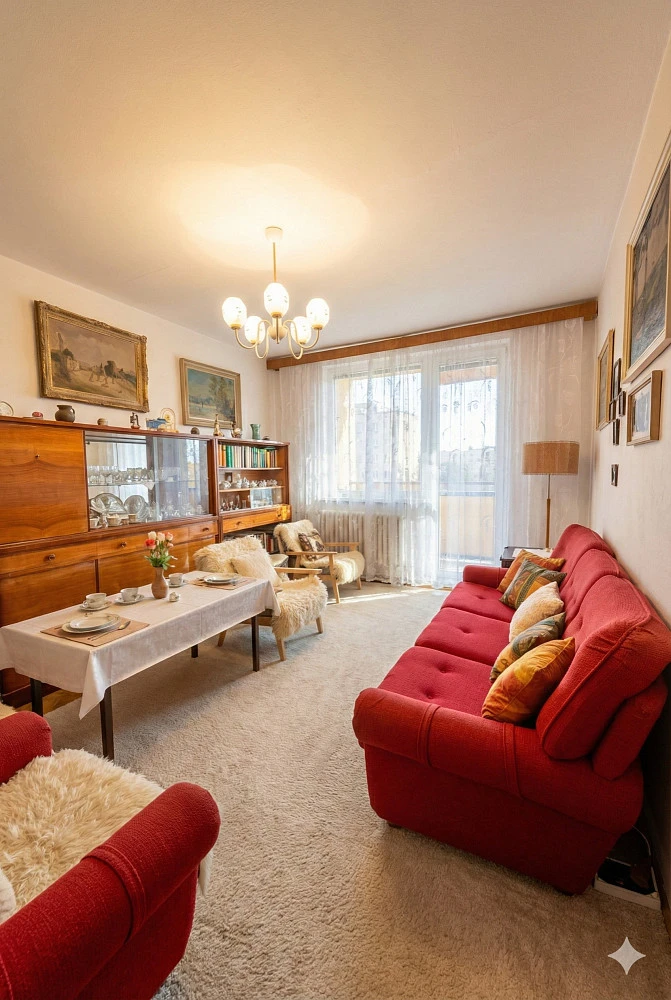 Byt je v původním stavu, s hliníkovými okny, ale má plastová okna – ideální pro kreativní rekonstrukci a zvýšení hodnoty nemovitosti.