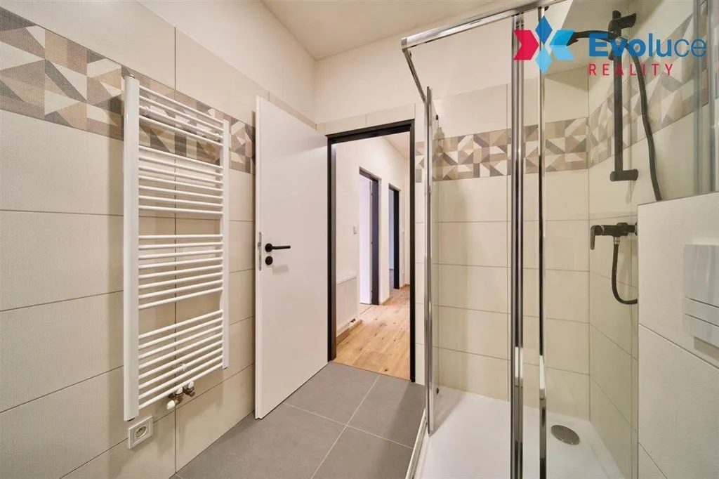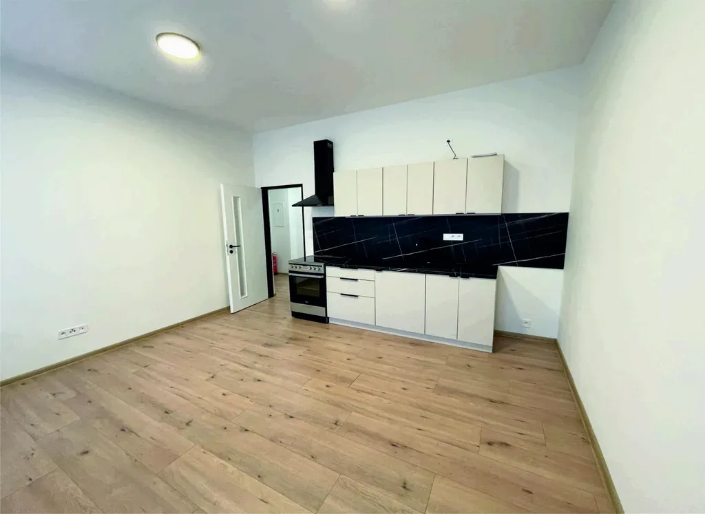 Dispozice: prostorná předsíň, obývací pokoj spojený s kuchyňským koutem a kuchyňskou linkou, ložnice, koupelna se sprchovým koutem a wc. K bytu náleží sklepní kóje v suterénu domu o výměře 3 m2.