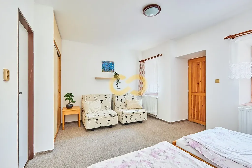 Na nového majitele tu čeká penzion s 11 pokoji, hospůdka se sálem pro 120 lidí a spousta prostoru s potenciálem na rozdávání.